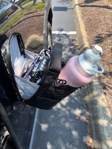 Excelente bolso, excelente servicio al cliente. Si te preguntas si aguantará tu botella de agua, puse una mancuerna de 4,5 kg en el bolso y aguantó de maravilla, incluso después de quitarla y volverla a colocar en la vertical varias veces. Probé una de 6,8 kg y aguantó prácticamente, pero cuando la mancuerna empezó a inclinarse al quitarla y volverla a colocar en la vertical, el bolso se cayó. Un galón de agua pesa 3,8 kg. Estoy bastante seguro de que aguantará tu botella de agua.